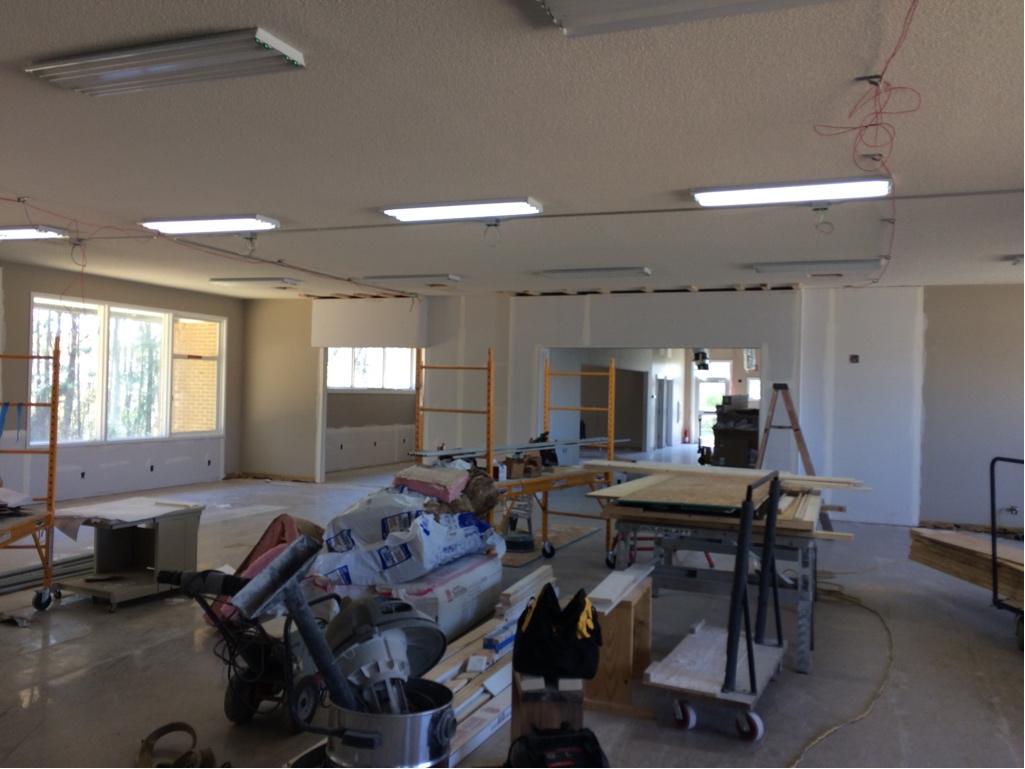 The library board of directors as well as the library staff have worked with architects, designers and the state library staff’s director of construction to repurpose this building. We have not added any square footage; however, we have transformed the building from the studs outward. I’ll include a photo that shows the project at about fifty-percent completion. I cannot wait to see the completed spaces, the newly designed exterior and the new computing and teen areas.